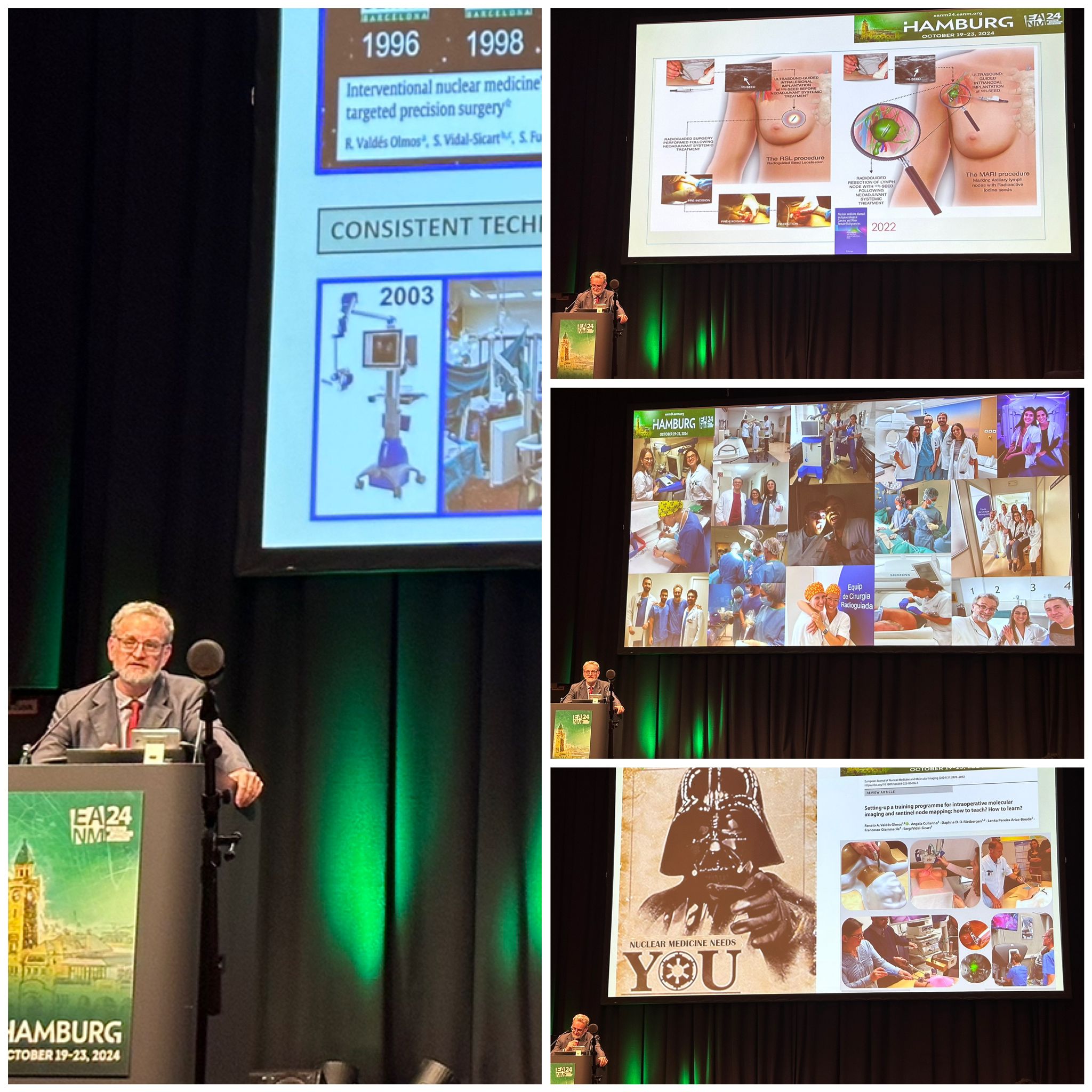 El Grupo de Trabajo de Cirugía Radioguiada de la Sociedad Española de Medicina Nuclear e Imagen Molecular ha tenido una participación destacada en el Congreso Europeo de Medicina Nuclear e Imagen Molecular (#EANM24) celebrado en Hamburgo, donde se ha mostrado como una pieza clave de la representación española en el programa científico. De los cuatro expertos invitados de España, dos son miembros de nuestro grupo, lo cual subraya la relevancia de la cirugía radioguiada en el contexto europeo de la medicina nuclear.