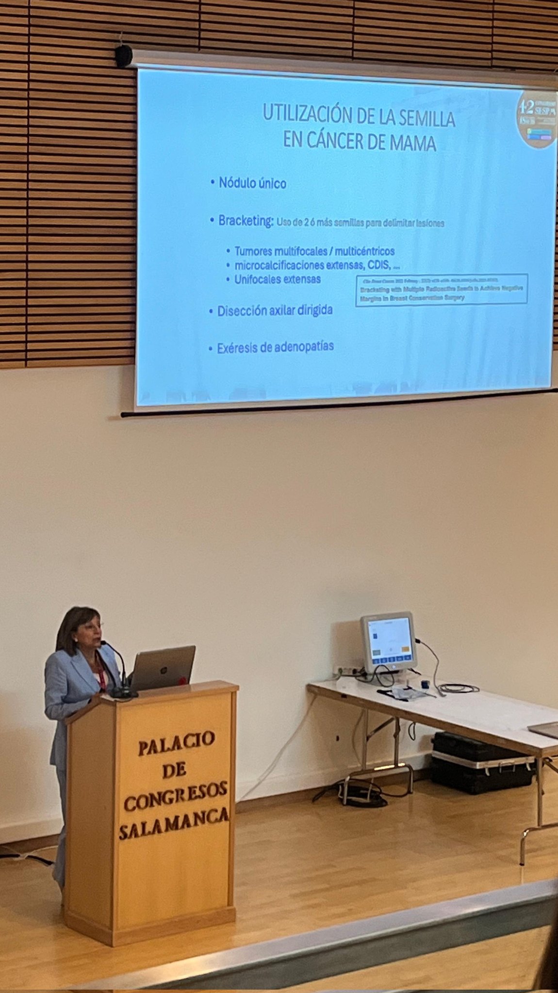 Estos días ha tenido lugar en Salamanca el 42° Congreso de la SESPM, donde la Dra. Begoña Miguel, presidenta de la ACALEMN (Asociación Castellana y Leonesa de Medicina Nuclear), ha participado en el curso precongreso con la ponencia «Localizacion de lesiones no palpables con las semillas radioactivas«.