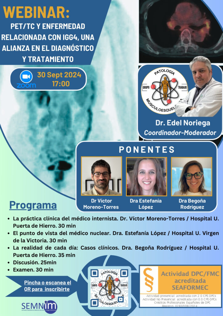 No puedes perderte nuestro próximo webinar: “PET/TC y Enfermedad Relacionada con IgG4: una alianza en el diagnóstico y tratamiento”.
