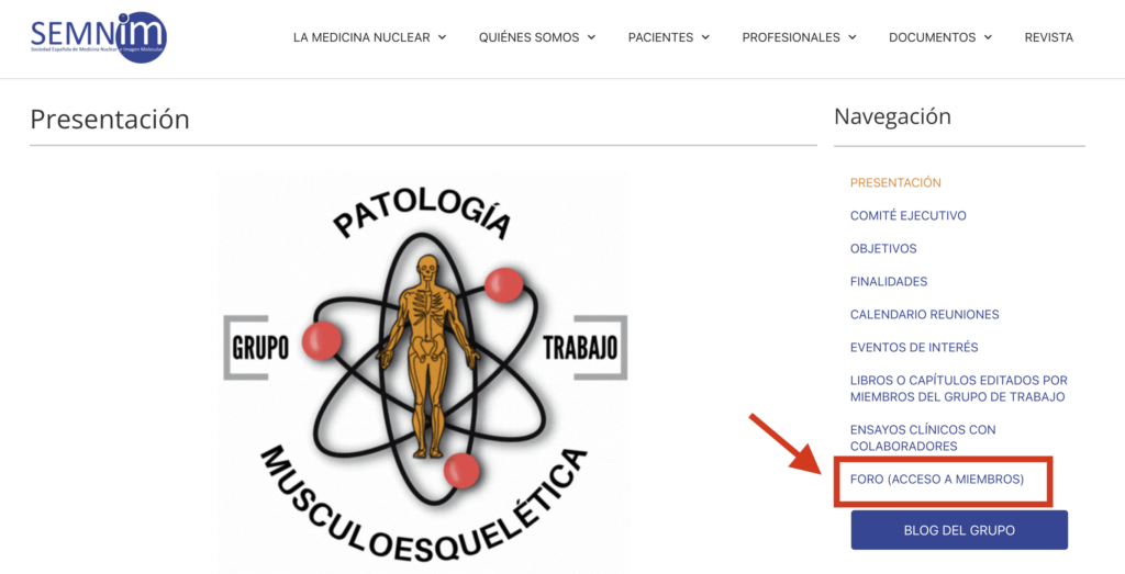 Gracias al webmaster de la SEMNIM se ha creado una sección de foros en el espacio web del GT al cual se accede desde el menú lateral derecho (el último ítem) y sólo pueden hacerlo los miembros de cada Grupo (es decir, no son abiertos).